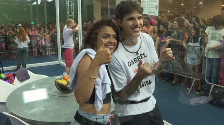 Após ser questionada, a biomédica chama Gabriel para tirarem foto juntos e conta para o modelo pedido de uma das visitantes da Casa de Vidro. "Ela tá que tá que pede. Nós dois entrando na casa, pra gente ficar junto sempre!".